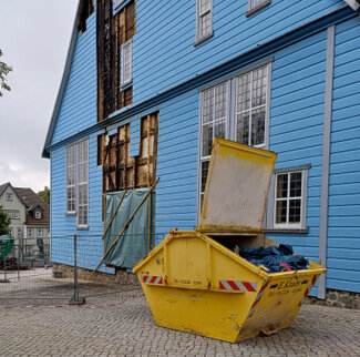 Um Antworten auf diese Frage zu finden, untersuchen Gutachter, auch aus dem Bereich der Landeskirche, wie groß der Schaden tatsächlich ist. Erst wenn der endgültig feststeht, kann die Gemeinde entscheiden, wie es nun vor Ort weitergehen kann. So sahen sich am Montag verschiedene Fachleute die durch das Feuer beschädigte Fassade und den durch Ruß und auch Löschwasser in Mitleidenschaft gezogenen Innenraum unserer Holzkirche an. Es ist nun einmal ein einzigartiges Bauwerk, so dass jeder Schritt genau überlegt sein will.